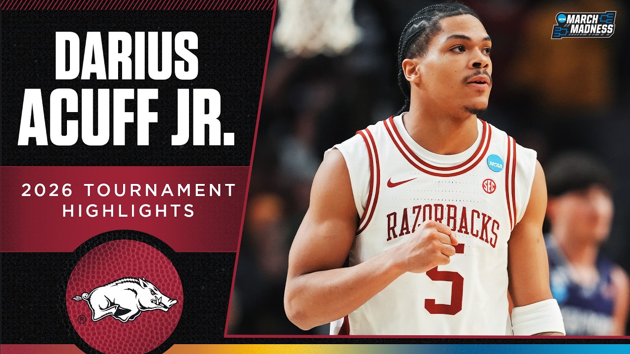 Arkansas freshman Darius Acuff Jr. made his mark in the 2026 NCAA tournament, leading the Razorbacks with his scoring and playmaking ability. He averaged 16.3 points and 4.7 assists across three games, reaching the Sweet 16. Watch his March Madness highlights here. Watch highlights, game recaps and much more from the NCAA Division I men’s and women’s basketball tournaments on the official NCAA March Madness YouTube c...