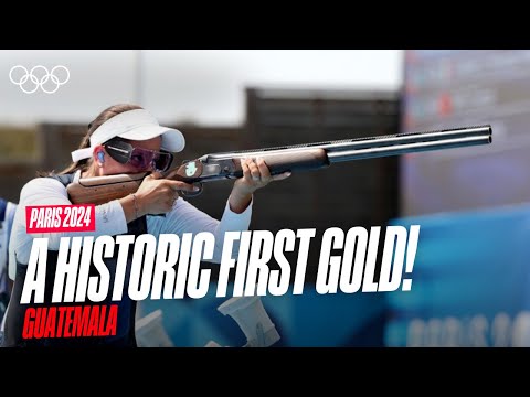 πΊ Re-live ALL the incredible #Paris2024 action: β‘οΈ https://oly.ch/P24Replays Watch Adriana Ruano win Guatemala's first-ever gold medal in women's trap shooting at the Paris 2024 Olympics. Ruano set an Olympic record with a total score of 45. Guatemala won another bronze medal during the Games, in the men's trap shooting final by Jean Pierre Brol. This was the first Olympic medal for both athletes. __________________...