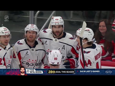 Tom Wilson scores a goal against the New Jersey Devils