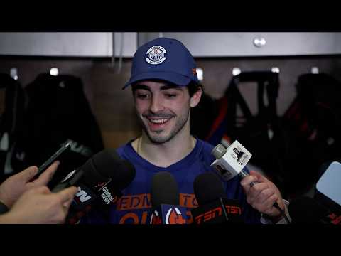 Matt chats with the media after the Oilers 3-1 win against the Blackhawks on Thursday.