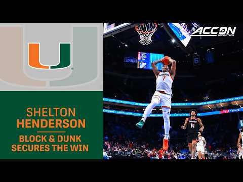 The No. 3 seeded Miami Hurricanes' lock-down defense led to the exclamation point of their win over the No. 6 seeded Louisville Cardinals in the quarterfinals of the 2026 T. Rowe Price ACC Men's Basketball Tournament. Holding onto a 5-point lead, Shelton Henderson blocks a shot attempt by Ryan Conwell, grabs the loose ball and races for a dunk to seal the win. For his efforts, we're naming Henderson's play our CPI Se...