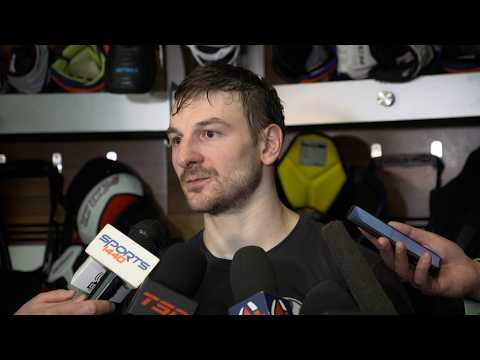 Zach addresses the media as scored in Edmonton's victory over the Sharks on Tuesday.